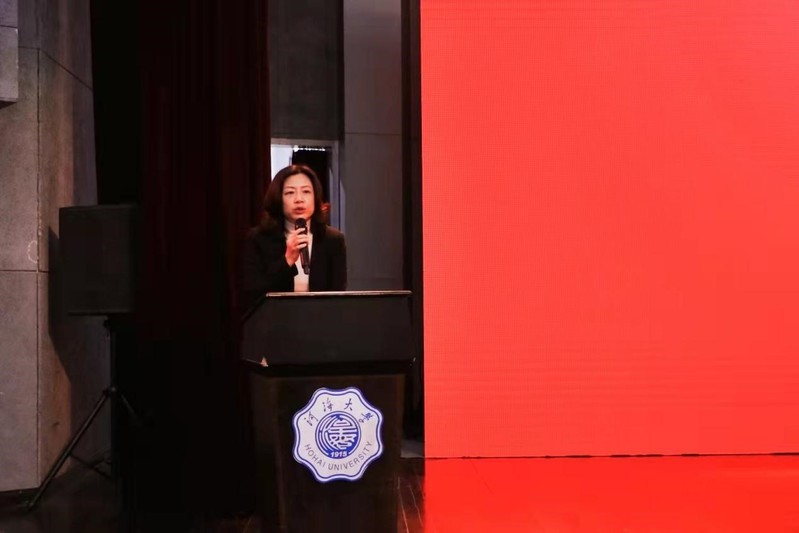 大会伊始,公司党总支任海莹书记致辞。首先,任书记对获得表彰的同学表示了热烈的祝贺,对积极投身公司工作的老师们和支持公司发展的同学们表示了衷心的感谢。其次,任书记对在座的同学们提出两点希望,一是希望大家明确奋斗目标,把个人选择与国家需要、人民利益和社会进步结合起来;二是希望大家脚踏实地,再接再厉,打好学问的基础,打好做人的基础,努力成为具有中国灵魂、国际视野的复合型、应用型高水平工程技术人才和业界精英。