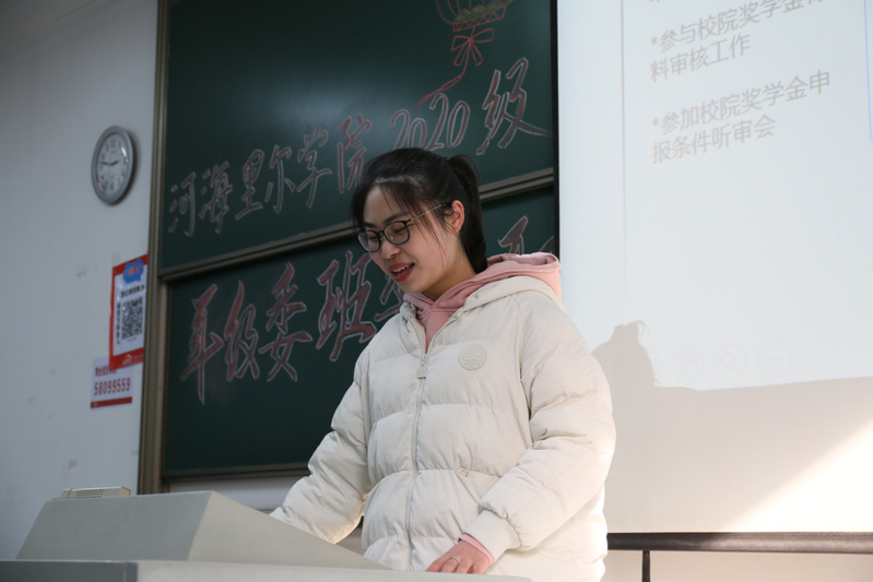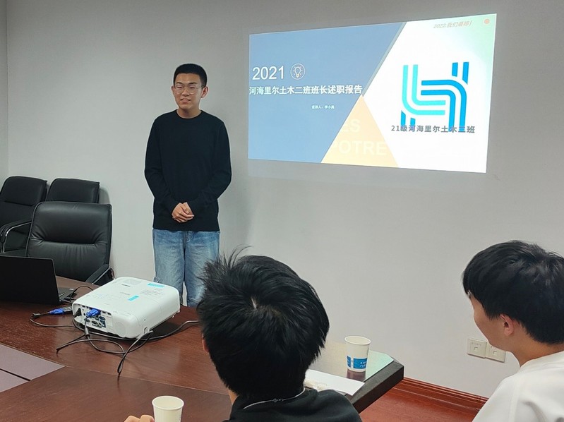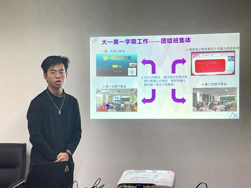 首先是述职环节,各班班委依次上台进行述职答辩。班长们就班级日常工作、班级制度管理、班级亮点、不足与改进四个方面进行了回顾、分析与展望。机械一班班长陈梓晟分享了督促同学健康打卡的好做法;机械二班班长胡吴桐根据期中考试后班级发生的向好变化以及目前存在的问题进行了深入分析;土木一班班长赖音亦向大家详细介绍了班委例会制度;土木二班班长李小禹就目前班级成绩两极分化严重,同学相对更加个性化提出了几点自己的思考。