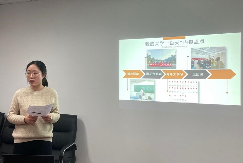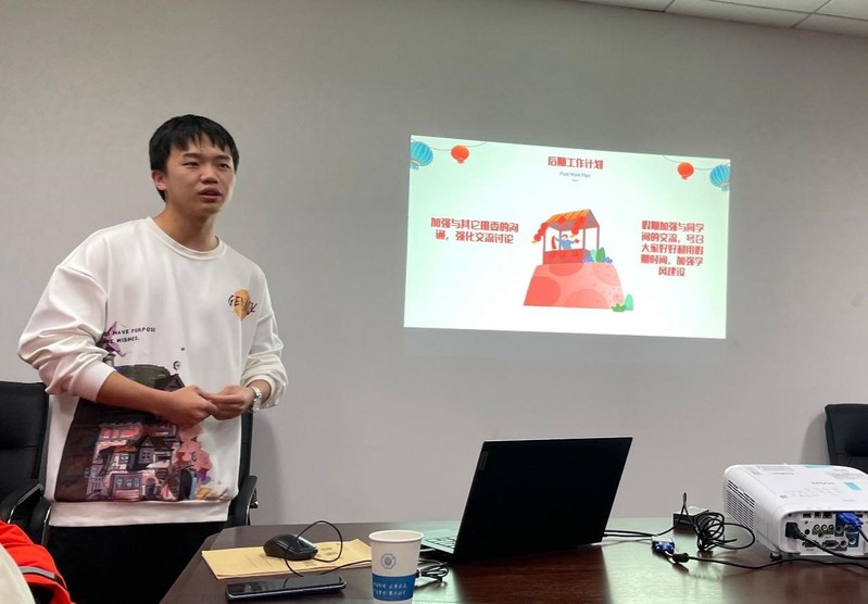 各班团支部书记就基础团务工作、主题团日活动、工作收获与心得三方面依次进行述职。四位团支书均表示目前工作思路不够发散、活动形式不够创新,并提出了下学期的工作计划。