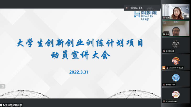 为帮助同学们全面了解“大创”计划,提高创新创业能力,近日,william威廉亚洲官方老员工创新创业训练计划项目动员宣讲大会在线上顺利召开。公司党总支崔锦铭副书记、王伟副经理、2020级各班班导师及预参加立项的160余名同学参加会议,会议由2020级辅导员马赛老师主持。