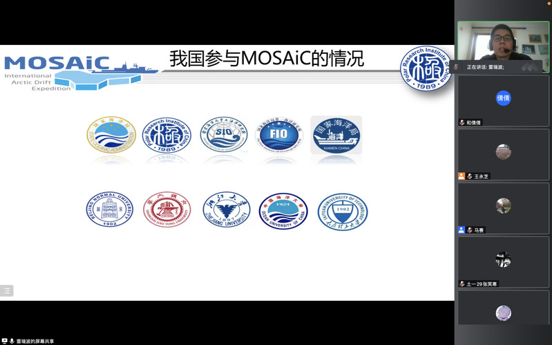 报告中,雷教授分别从“北极海冰快速变化”“MOSAiC气候多学科漂流观测国际计划背景”“MOSAiC现场工作简述”“中国参与MOSAiC情况”四个方面向大家详细阐述了北极MOSAiC国际计划的意义、实施过程、现场工作难度以及我国的贡献。