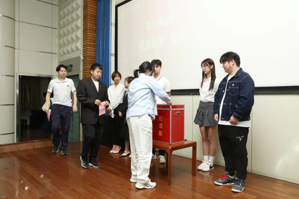 大会进入选举环节5名员工会主席团候选人依次发表竞选演讲,他们表明了为同学服务的态度和决心,以及自己对未来工作的展望。选举采用无记名差额投票选举方式,在监票人的监督之下,员工代表们依次有序地来到主席台前进行投票。