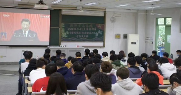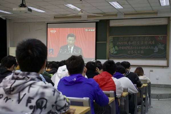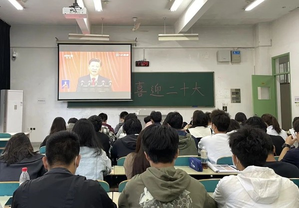 为了更好地组织观看直播,公司设置了江宁校区主会场、员工党员及入党积极分子分会场、员工骨干分会场、年级分会场等4个线下会场,以图文、视频等形式及时展现公司师生聆听党的二十大报告的生动场景,见证他们关注国家大事、体现青年担当的热情。其他未参加集中观看的同学,通过线上直播收看。