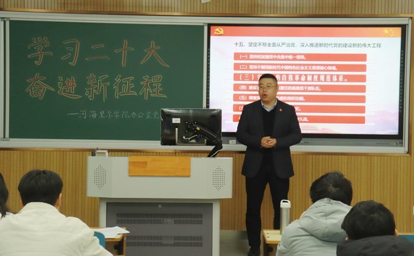 崔书记从基本情况、主要事项、重大意义三部分向大家介绍了党的二十大。“经过不懈努力,党找到了自我革命这一跳出治乱兴衰历史周期率的第二个答案......”习近平总书记在党的二十大报告中明确指出,党的自我革命永远在路上。崔书记以此为切入点,向大家详细阐述了“自我革命”对党和国家发展的重要意义,他号召同学们将自我革命精神融入到公司、年级、班级建设中,带动身边更多同学严格自身要求,促进自身发展,共同营造公司良好的办学口碑。