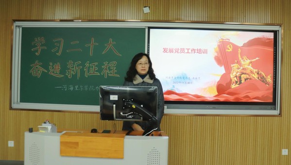 接着,王永芝书记对大家进行了发展党员工作的培训。她分别从申请入党、入党积极分子的确定和培养、发展对象的确定和考察、预备党员的接收、预备党员的教育考察和转正五个部分,详细讲解了入党的流程及要求。同时,王书记结合自身经历,讲述了自己入党时的体会,并向同学们展示了当年作为辅导员发展的第一批党员的相关材料,从细节之处强调了入党的严谨性与严肃性。她希望所有入党积极分子时刻以党员的标准严格要求自己,为早日加入中国共产党而努力。