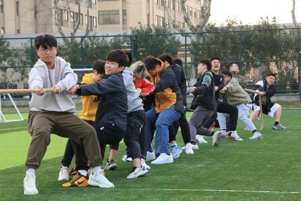 拔河拼的是团结协作,拔的是目标一致。“一二三,开始!”,当号令发出,各班男子汉们紧握长绳,铆足干劲,使劲后倾拉拽,赛场上的口号声、赛场下的加油声此起彼伏,活动现场高潮迭起,精彩连连。
