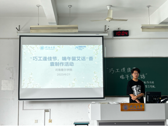 活动一开始,主持人岳家乐同学向大家介绍了制作香囊的历史、意义以及流程。