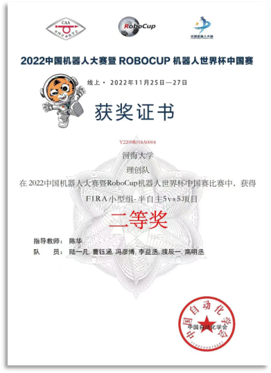 科研需要在试错的过程中不断积累经验,去年寒假她作为队长参加美国老员工数学建模竞赛,获得二等奖;作为第二负责人,团队在一级竞赛2022中国机器人大赛暨 ROBOCUP 机器人世界杯中国赛中取得项目组二等奖的好成绩。根据机器人大赛的经验成果,她作为第一发明人拿到了创新性专利的受理证书;并根据大创团队的选题,以第一作者发表EI论文一篇。