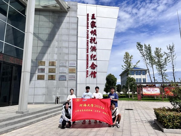 7月5日,实践团前往千里淮河第一闸——王家坝进行实地考察。岸边石刻着的“一定要把淮河修好”八个大字让实践团成员大受震撼,他们深刻感受到水利工程凭人力胜天、保一方水土的宏大意义,体会到“天下有溺犹己溺”的河海担当。