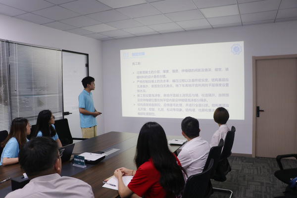 为了让同学们感受真正的工作环境、处理真实的工作问题,项目群结合员工的专业背景、在建项目的工作进展,提供了3个工程类课题,分别是“地下室金刚砂耐磨地坪裂缝控制”“地形图测绘”“现浇混凝土楼板板厚控制”,以期同学们在实践中真正地有所付出、有所思考、有所收获。12位同学分为3组,深入项目建设工程一线,在带教老师的指导下,与其他工作人员同吃同住,通过广泛查阅资料、主动询问请教、深入建设现场、合理分工合作,顺利完成了课题任务。