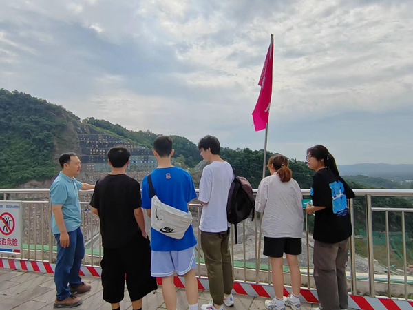 7月7日,实践团赴国家172项重大水利工程之一的李家岩水库进行参观调研。实践团邀请到水库技术负责人为团队进行讲解介绍,并带领团队进行了实地参观。负责人从工程概况、目前已推进节点、后续节点目标等三个方面详细展开,让实践团深刻了解了李家岩水库作为成都第二水源拟建水库为成都市人民带来的福泽,以及其对于形成系统完备的国家水网体系的重要意义。为了解一代代水利人艰苦奋斗、投身水利的精神力量,实践团对负责人进行了专访。通过访谈,实践团了解到该工程实施中面临地质条件和料场开采等困难,对于这些困难,负责人表现出了克服困难的强大决心,他这样说道:“的确很累,困难重重,但一想到这一工程能够造福千千万万的人民,我的心里就充满自豪。”质朴有力的话语,让实践团成员内心激荡,他们深刻理解了“天下有溺犹己溺,毋负邦人期”的精神内核,是无私奉献,是永不言败,是福泽百姓的责任与担当。正因如此,国家水网的建设才能稳步推进,持续发力。