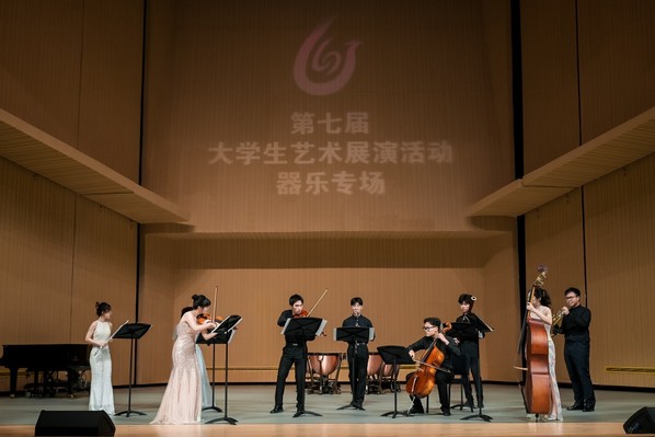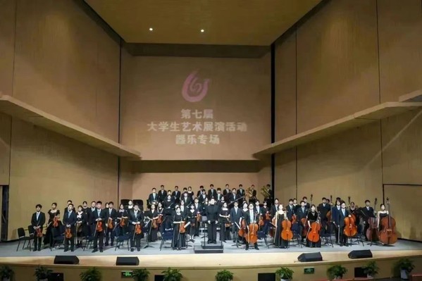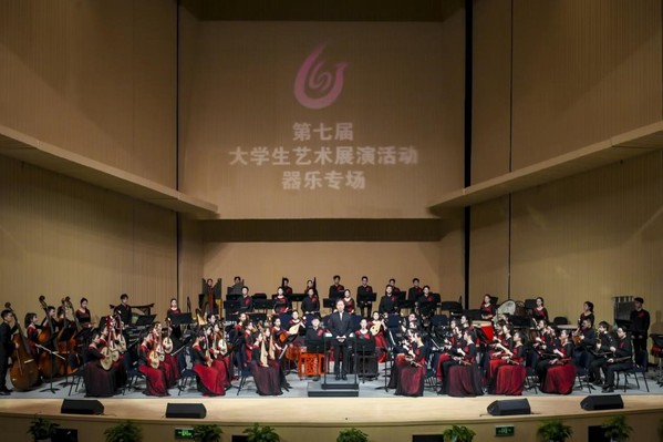 公司2022级徐芃参与其中的民族管弦乐作品《抒情变奏曲第三乐章》是当代著名作曲家刘长远先生的第一部民族管弦作品,将中国不同民族、不同地域的音乐元素成功融合,加以综合运用,从而多样化地展现了中国人民的生活风貌。作品的第三乐章是热烈的终曲,通过恢弘的旋律彰显音乐的奇幻色彩,以慷慨激昂和乐观向上的情绪为主,间以幽默、风趣的音乐形象交替,将人们在生活中的喜怒哀乐表现得淋漓尽致,是一部表现力丰富、感染力强的民乐作品。充分表达了新时代中国人民的乐观精神和积极向上的生活态度,充分展现了博大精深的中国民族音乐文化和振奋人心的民族精神。从2022到2023,这首打磨了近一年半的作品,终于在赛场上绽放光彩。声声乐音回响于恩玲艺术中心,民族乐团的同学们将情绪起伏倾于指尖,或激昂、或奋起、或抒情;他们心涌澎湃,思潮起伏,将技巧与情感的结合发挥到极致。