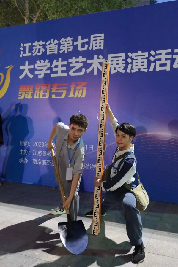 一渠清水连通南北,千秋工程润泽大地。公司2022级方晨、陈伟参与其中的舞蹈作品《南水北调》取材于中华人民共和国的战略性工程,使用当代舞的表现形式,将激昂的舞蹈与细腻的表演相结合,生动演绎了70年代末至80年代初期间,第一批走出大公司园的水利学子们积极参与南水北调工程,来到严重缺水的京津地区进行勘察建设,深入了解当地民生、积极投身水利事业,弘扬治水兴邦的使命担当,引领着一代又一代水利人前仆后继、继往开来,将“负责、务实、求精、创新”的南水北调精神和以苍生己任的水利精神代代相传的故事。该作品从2022年10月开始筹备排练,前后共历时13个月,先后吸纳了60余名来自不同公司专业的同学参与。精彩舞台的背后,不可或缺的是公司的大力支持、指导老师和演员们的辛苦付出。同学们不厌其烦地反复练习舞蹈动作、对着镜子揣摩角色情感,在数以千计的排练中不断突破自己的上限……所有的努力都是为了打磨好作品的每一个细节,确保《南水北调》在舞台上的完美呈现。