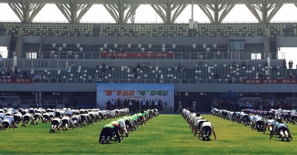 另外,在运动会开幕式表演中,公司20名男生组成的俯卧撑方队也参与其中,他们在烈日炎炎下跟随带队老师的节奏,整齐划一地圆满完成了俯卧撑表演,用实际行动展示着河海里尔学子强健的体魄与坚强的意志!