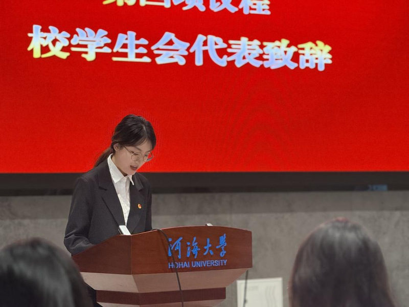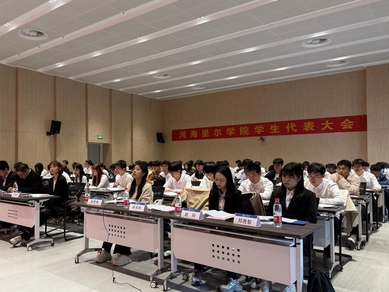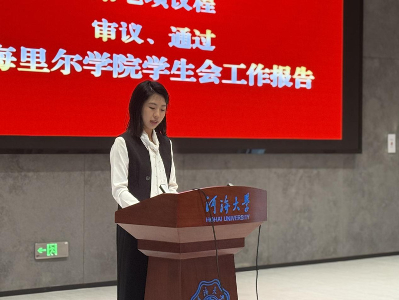 随着庄重的国歌声,会议正式开始。公司党委副书记胡鹤轩致辞。他代表公司党委对院员工会一年来的工作进行了充分肯定,并对新一届员工会提出四点建议,希望大家不忘初心、注重实干,继续加强思想教育、当好桥梁纽带、强化文化建设、推进创新创业,带领广大学子用河海里尔人的智慧和力量书写更加绚烂多彩的青春乐章。
