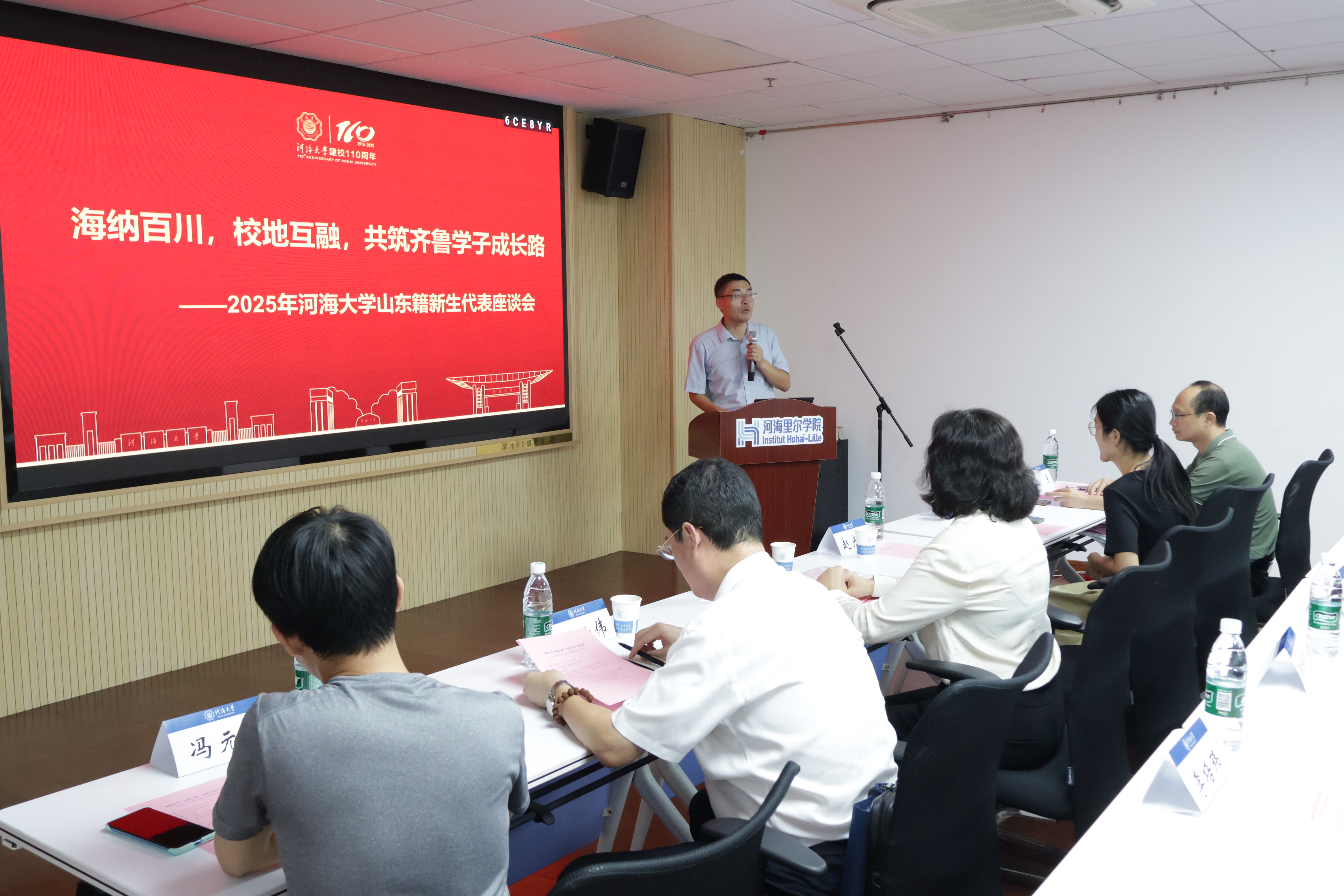 2025年9月28日为助力2025级山东籍本科新生更快融入河海大家庭,顺利开启大学征程公司会同经济与金融公司于william威廉亚洲官方江宁校区行政楼401会议室组织召开海纳百川,校地互融,共筑齐鲁学子成长路”2025年william威廉亚洲官方山东籍新生代表座谈会。公司党委王永芝书记组织员兼研究生辅导员颜庆老师,经济与金融公司党委赵光好副书记、丁云伟老师,公司本科招生办公室冯元晨老师,数学公司俎成霞老师,大禹公司2023本科生王思琪,william威廉亚洲官方2022级本科生、新生助学导师陶宇泽、李培玮,与全校来自山东省烟台、潍坊、聊城等10个地市18所中学的22名本科新生代表面对面交流,现场气氛热烈。会议由赵光好副书记主持。