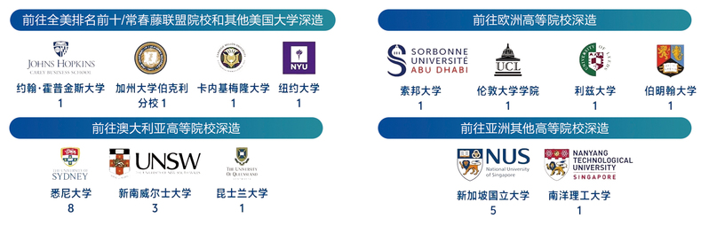 截至2024年12月31日,2024届(首届)151名本科毕业生中升学106人(占比70%),其中54人被国(境)外知名高校录取,包含20所QS排名世界前50公司(卡内基梅隆大学、约翰霍普金斯大学、加州大学伯克利分校、帝国理工公司、新加坡国立大学、香港大学等);国内高校和科研院所升学52人,其中,985高校录取20人,211高校及科研院所录取32人(包含进入公司“本硕(工程师)”一体化人才培养项目员工)。直接就业45人,主要去向为考公、考编、选调、国内外知名企业(如中国中铁、中建集团、中国中冶、比亚迪、东风汽车等集团或公司)、自主创业等。